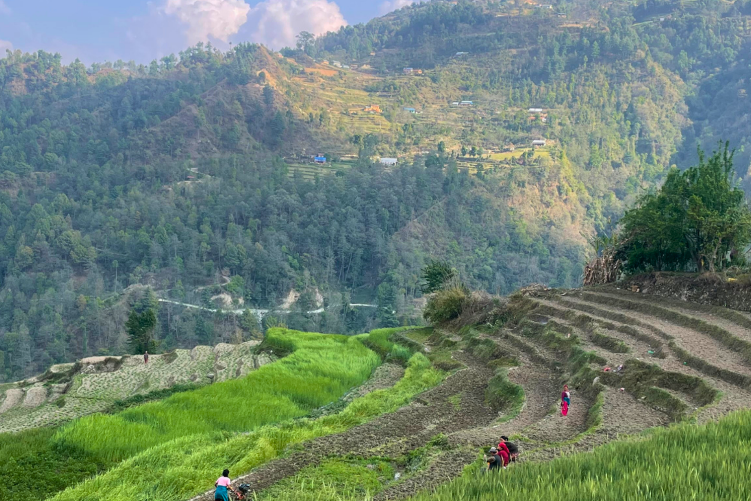 Smallholder farmers use modern farming practices on the terraced farms of Dakshinkali